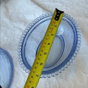 Decorative blue glass hen covered dish by Indiana Glass. Detailed feather texture and beaded rim. Charming accent for tabletop or shelf display.