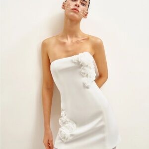 JW PEI White Strapless Mini Dress with Floral Details