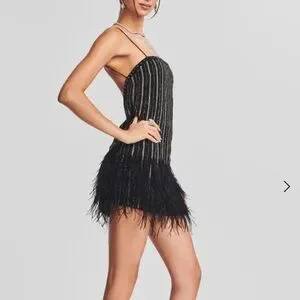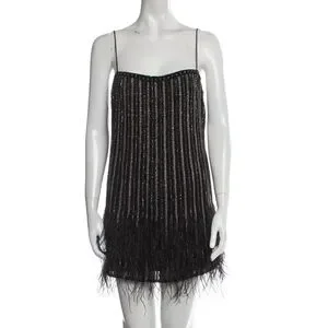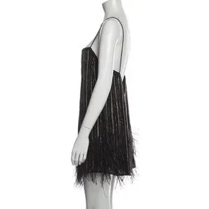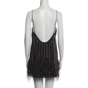 Retrofete Rubina Sequin Feather Mini Dress Black Square Neck