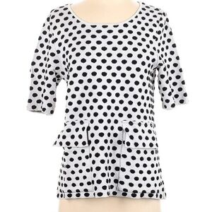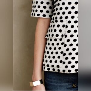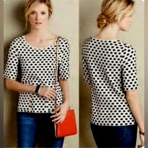 Add a playful touch to your wardrobe with this charming "Dottie" top by Moth for Anthropologie. Crafted from a 100% cotton knit, this black and white polka dot features a delightful raised dot texture. It features a cozy crew/scoop neckline, short sleeves, and two front patch pockets with flaps, offering both style and utility. It has a slightly A-line silhouette, perfect for pairing with denim or skirts for a retro-chic look. Excellent pre-owned condition,no stains or flaws. Sz S