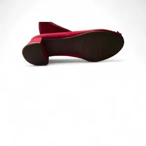 NWOB Anne Klein Red Suede Cocktail Heels - Gold Metallic Trim & Pom-Pom