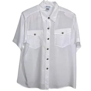 ShipN Shore White Button-Down Short Sleeve Blouse With Front Pockets Size 16W