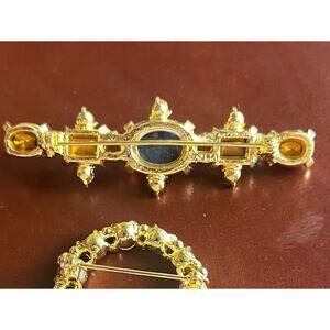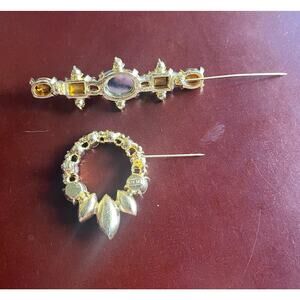 Lia Sophia Gold Tone Wreath & Bar Brooch Pin Lot Red Yellow Rhinestone Gift Set