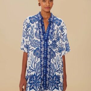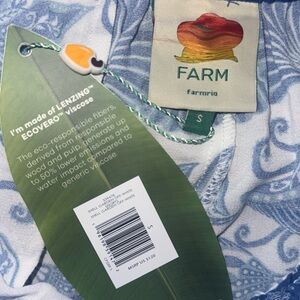 The Multicolor Summer Picnic LENZING™ Shorts from FARM Rio captivate with their playful blue floral motifs set against a fresh white backdrop.
