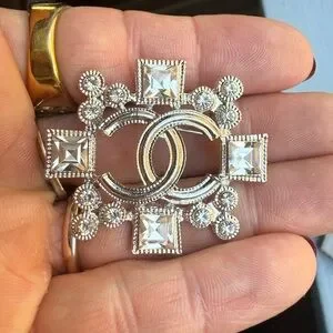Silver Tone CC Crystal Statement Brooch Pin