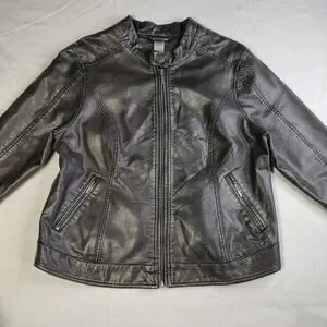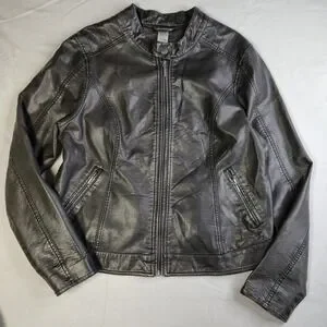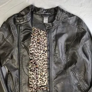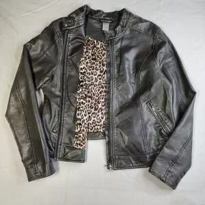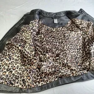 Cruel Womens Faux Leather Biker Jacket Metallic Black Leopard Lining XL
