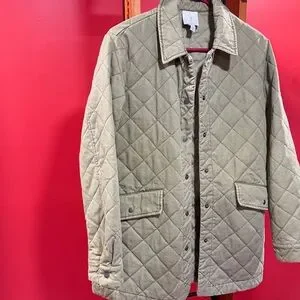 Stay stylish and warm with this quilted olive green jacket. Perfect for layering, it offers both comfort and elegance.