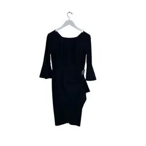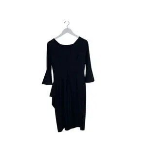 Alex Evenings Black Bell-Sleeve Draped Compression Sheath Dress Size 6