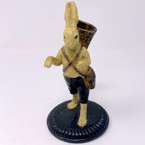 Vintage Rabbit Figurine Basket Carrier Woodland Bunny Cottagecore Decor