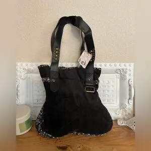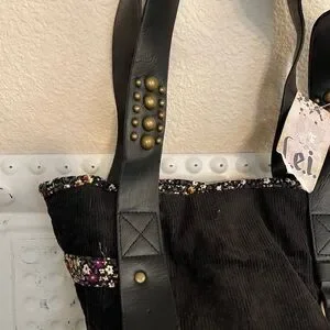 Vintage NWT l.e.i. Black Corduroy & Floral Shoulder Bag with Studded Straps