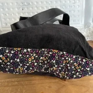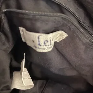 This authentic vintage l.e.i. shoulder bag is a quintessential example of early 2000s "mall brand" nostalgia. It perfectly blends a grunge-inspired black corduroy body with feminine, cottagecore micro-floral trim. The wide faux-leather straps are accented with tiered brass-tone studs, giving it a unique "boho-edge" aesthetic that is highly sought after in current vintage trends.