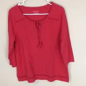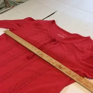 Talbots Red Peasant Lace Accent Top Tunic Size Medium