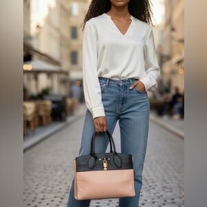 Rear Beautiful Bi color Leather Handbag / Shoulder Bag