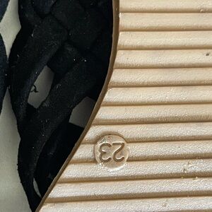 These sandals feature a sophisticated woven design in black leather, complemented by a natural tan footbed. The intricate crisscross straps provide a stylish lattice pattern, ensuring both comfort and elegance. Perfect for casual summer outings, these flat sandals offer a practical yet decorative appeal.