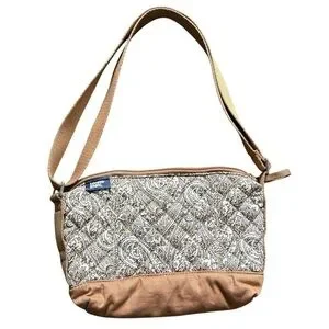 Lands’ End Quilted Paisley Crossbody Shoulder Bag Tan Brown Preloved