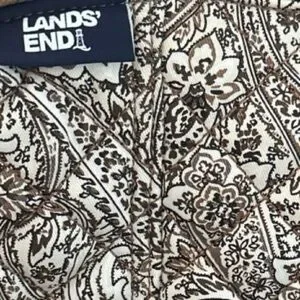 Carry your essentials in timeless style with this Lands’ End quilted crossbody/shoulder bag. Features a paisley floral quilted fabric design with tan canvas accents and an adjustable shoulder strap for comfortable wear. The bag has a zip top closure, an exterior zip pocket, and a roomy main compartment — perfect for everyday use, travel, or casual outings.