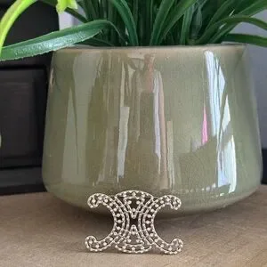 Silver Tone Rhinestone Scroll Monogram Brooch Pin