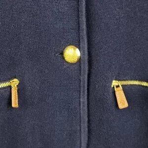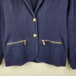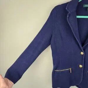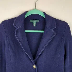 LRL Lauren Ralph Lauren Navy Blue Cotton Knit Sweater Blazer size M Petite