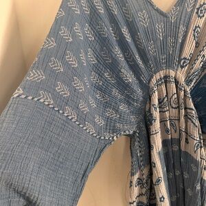 Anthropologie gauze maxi dress in a stunning blue asymmetrical patchwork design 🌊