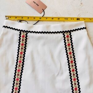 Miu Miu White Denim Mini Skirt With Floral Trim size 40
