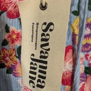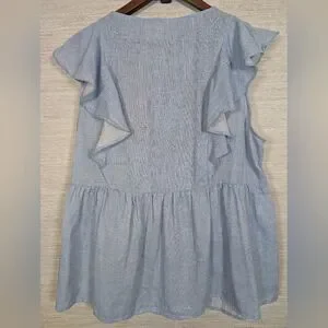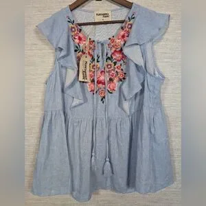 Savanna Jane Plus Size Floral Embroidered Striped Sleeveless Blouse Top 1X NWT