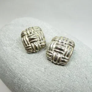 This listing is for the vintage clip earrings pictured. They are a silvertone basketweave design. They are in wearable vintage condition and do show some signs of age and being worn as pictured.