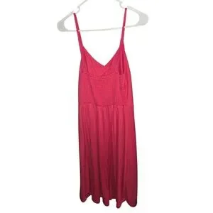 Pink Button-Down Midi Summer Dress, Medium, Preppy, Stretchy
