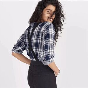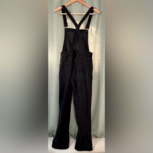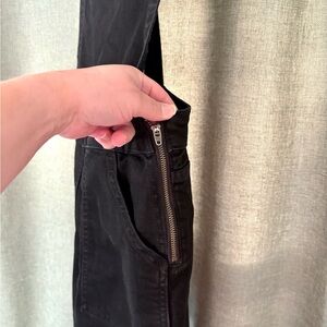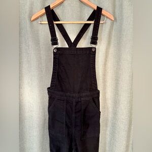 Madewell bootcut cross back overalls. Large front pockets, side zipper.