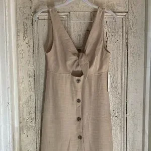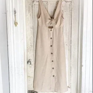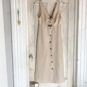 Blue Blush Blue Tie Front Button Midi Dress Size Small. Style # BD9146. Tie at Chest Button Front Midi Length Sleeveless Linen Blend. Brand new with tags.