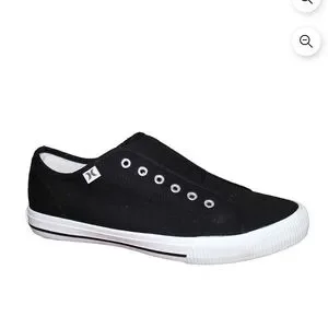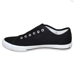 Classic black sneakers with white accents. Comfortable and stylish for everyday wear.