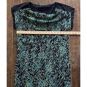 Vintage 90s ESPRIT Dress Turquoise & Navy Floral Women's Size Large Short Sleeve