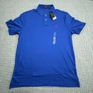NWT Polo Ralph Lauren Golf Polo Soft Cotton Shirt Men's Medium Blue W/ Red Pony