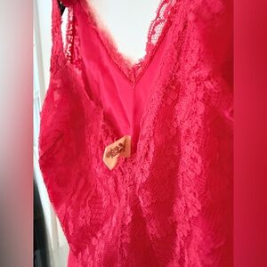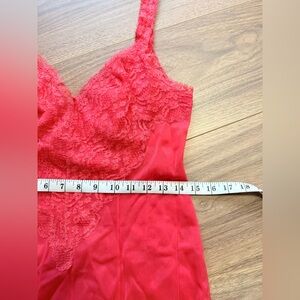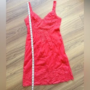 Keywords: Vintage, Lingerie, Slip Dress, Hot Pink, Coral, Red, Lace, Nylon, Bodycon, Pin Up, Night Dress, Sabrina Carpenter, Short and Sweet, Small, Extra Small, Womens, 34, Henson Kickernick