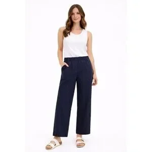 The Everlane The Easy Pant in Organic Cotton is a versatile and comfortable pull-on style pant in a classic navy blue color. Made with 98% organic cotton and 2% elastane, these pants feature a wide-leg design with a flat front and high rise. Perfect for casual, workwear, or travel occasions, these ankle-length pants are ideal for a variety of seasons. With an elastic waist for added comfort, this pant combines modern style with sustainable materials for a chic and effortless look.