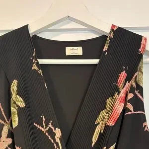 Artizia Wilfred Black Floral Pleated Maxi Dress with Pink Roses Sz. 8