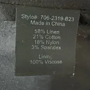 Material 58% Linen, 21% Cotton, 18% Nylon, 3%