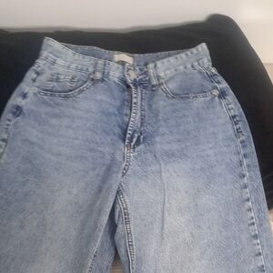 Classic light wash denim jeans. Five-pocket style with a high-rise waist. Simple, versatile everyday pair.