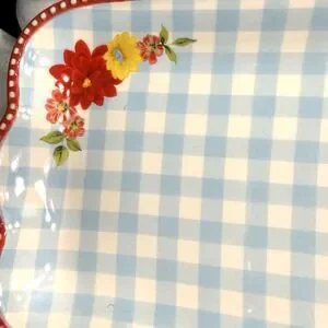 The Pioneer Woman Sweet Rose Narrow Platter is a rectangular serving tray made of stoneware, featuring a beautiful floral pattern in a pink color. With a glossy finish, this 14x7 inch platter is perfect for all occasions and is dishwasher safe for easy cleaning. The Pioneer Woman brand ensures quality and style, making this piece ideal for adding a touch of floral and garden theme to your dining experience. Item# BM976