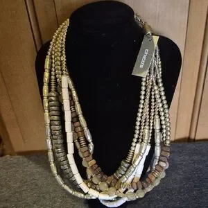 Chico's necklace with layered gold and silver beads. Stylish and versatile.