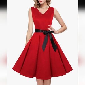 nwt, size 2XL from ihot. v-neck, sleeveless, zipper back closure, unlined A-line swing dress. 95% cotton, 5% polyester. machine washable. fabric does have some stretch. see photos for more details and approximate measurements. does not include a belt.