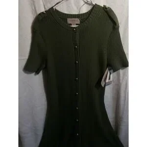 French Connection Women's Green Stretch Dress Size L – Short Length, Button