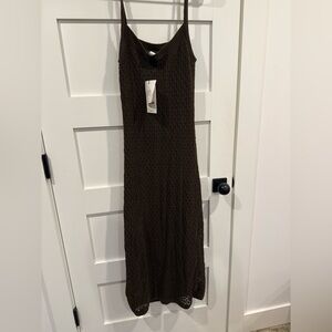 Reformation knit maxi with a slim slip silhouette. Rich brown textured knit fabric. Thin shoulder straps. Breathable knit with a slight stretch. Versatile piece for day or evening styling.