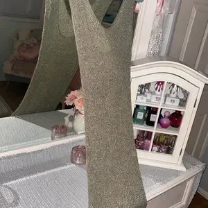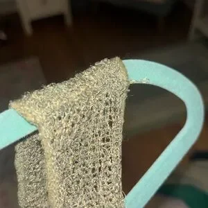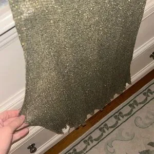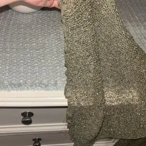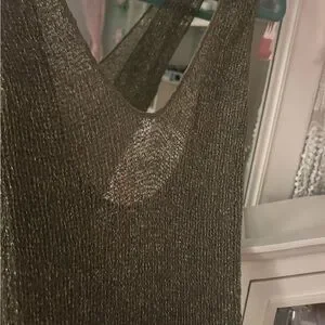 Open-knit scoop neck top with metallic thread. Breathable texture and subtle shine. Easy to layer over tanks or dresses.