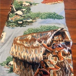 Colorful shorts with a tropical landscape design. Ideal for warm weather.