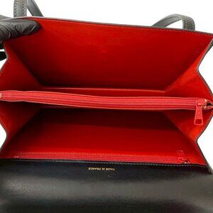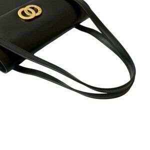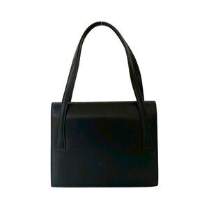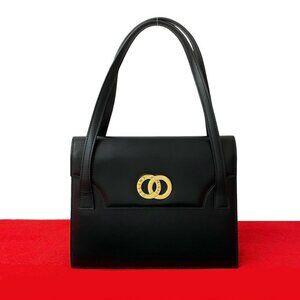 This is an authentic Celine Vintage Circle Logo Hardware Calf Leather Genuine Leather Handbag Mini. The compact handbag features the iconic Celine logo hardware, a sleek black leather construction, and a structured silhouette with dual top handles.