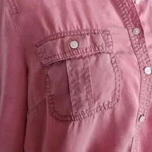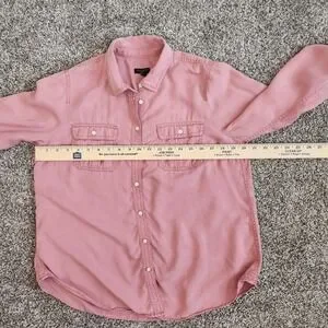 Beautiful Talbots Petite button-down blouse in a dusty rose pink color. This is a lovely, soft shirt with a relaxed, casual-chic feel — perfect for everyday wear or light layering.