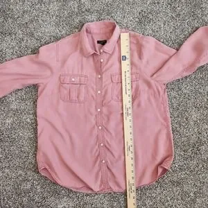 Talbots Button Up Blouse Women's Large Petite Dusty Pink Roll Tab Sleeve Pockets