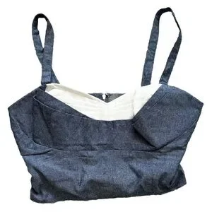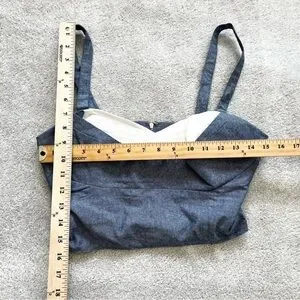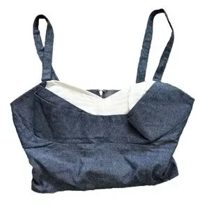 Super cute cropped top with adjustable button straps, zip back and back ruching.