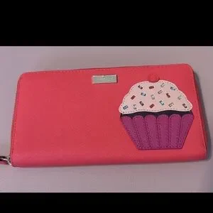 Pink Kate Spade Leather Cupcake Zip Around Wallet