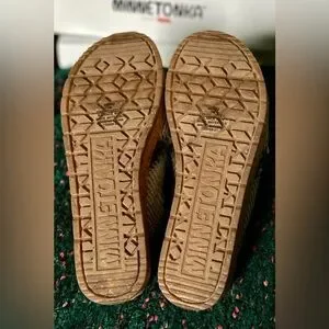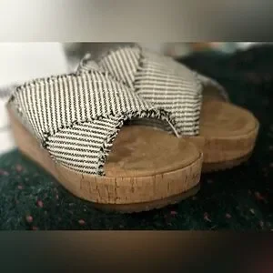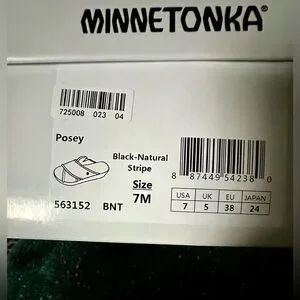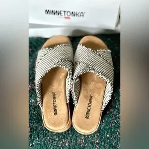 🎸MINNETONKA🎸🔥NWT🔥Posey Wedge in Black/Natural Stripe—7